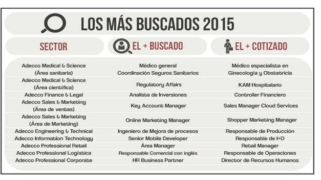 Comienza un año  nuevo con todas las expectativas puestas en la mejora de la economía y la creación de empleo, ante este escenario Adecco Professional, la consultora de selección del Grupo Adecco, especializada en los principales perfiles profesionales del área comercial, tecnologías de la información, salud, financiera, legal, de ingeniería, sector logístico y sector retail, lanzó sus previsiones para este año a través de su informe Los + Buscados, que en 2015 celebra su décima edición.